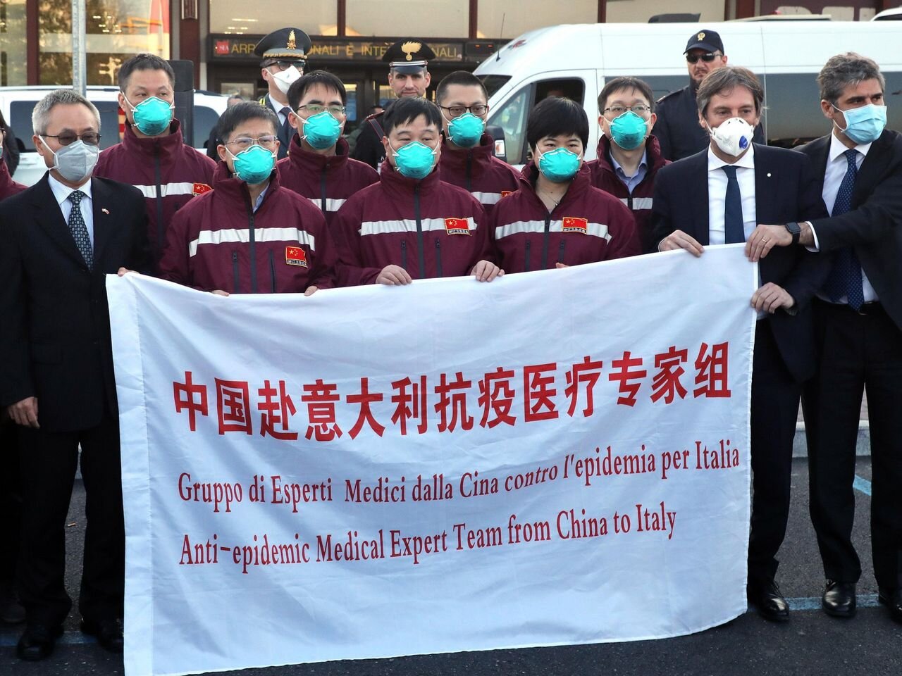 Bien sûr, les experts occidentaux ont rapidement dénoncé ce qu'ils considèrent comme une « diplomatie de masque » chinoise opportuniste, un coup de force intéressé conçu pour renforcer l'image de la Chine sur la scène mondiale. Pourtant, lorsqu'on lui a demandé si l'aide chinoise était véritablement humanitaire et non simplement un acte délibéré géopolitique, le conseiller économique italien Michele Geraci a déclaré explicitement: « Je ne sais pas et maintenant je m'en fiche. Si quelqu'un craint que la Chine en fasse trop, la porte est ouverte à d'autres pays. C'est ce que les autres pays devraient faire ». Face au plus grand nombre de cas enregistrés après la Chine, l'Italie le 25 mars souhaitait la bienvenue à une équipe de neuf membres du personnel médical chinois et 30 tonnes de matériel médical coordonné par l'ambassade de Chine en Italie et la Croix-Rouge chinoise. Au contraire, l'US Air Force a expédié la semaine dernière un demi-million de kits de test hors d'Italie pour faire face aux pénuries aux États Unis.