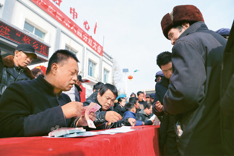 Την 1η Ιανουαρίου 2020, στη Σύμβαση Προώθησης και Μετόχων του Χωριού Γιουανγκούι 2019. Οι χωρικοί, ως μέτοχοι τοπικών εταιρειών και συλλόγων, σχηματίζουν ουρά για την εκταμίευση μερισμάτων. [Η φωτογραφία παρέχεται από το Xinhua, φωτογράφος: Ma Xiping]