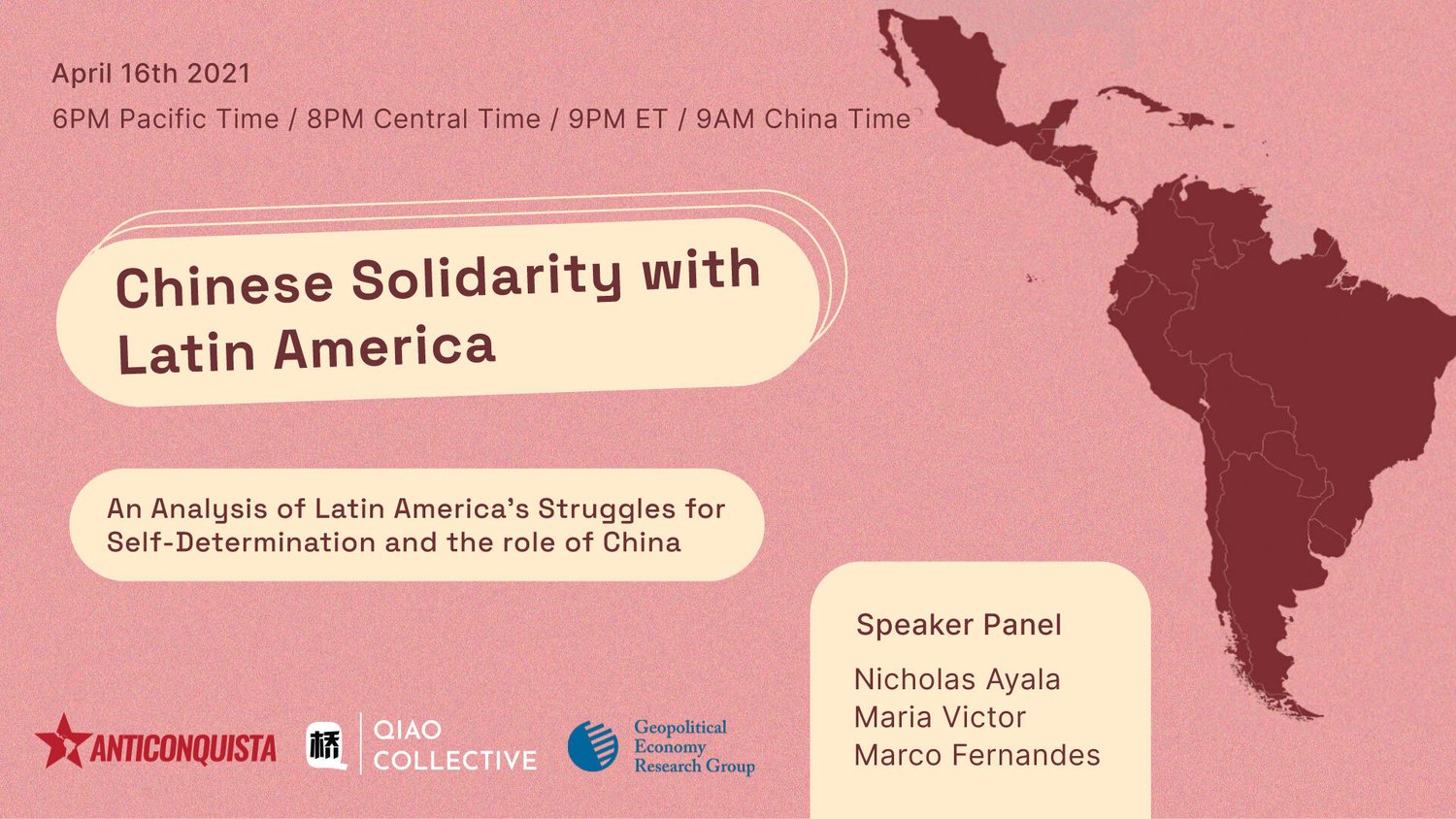 Organized by Geopolitical Economy Research Group - GERG, Qiao Collective, and ANTICONQUISTA
